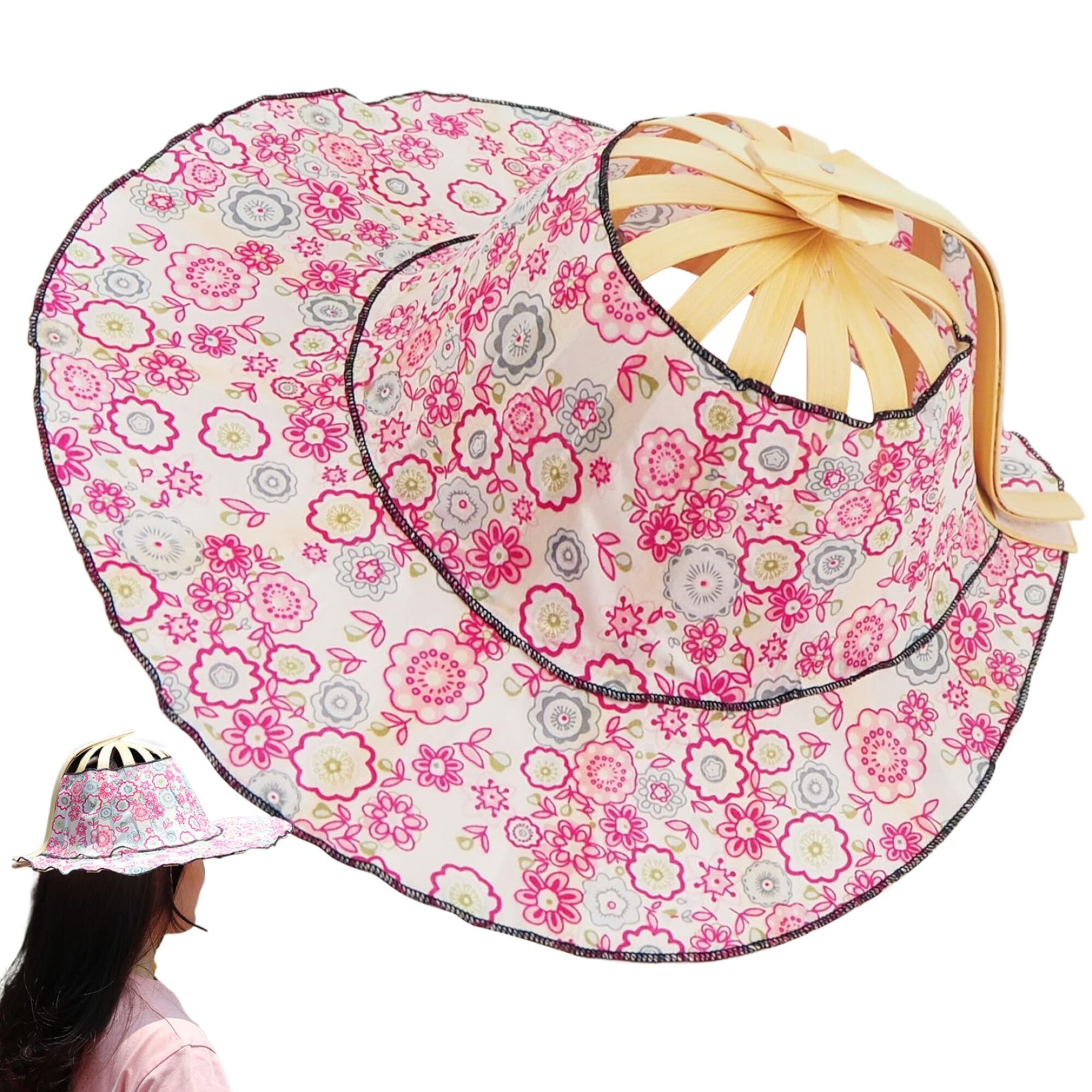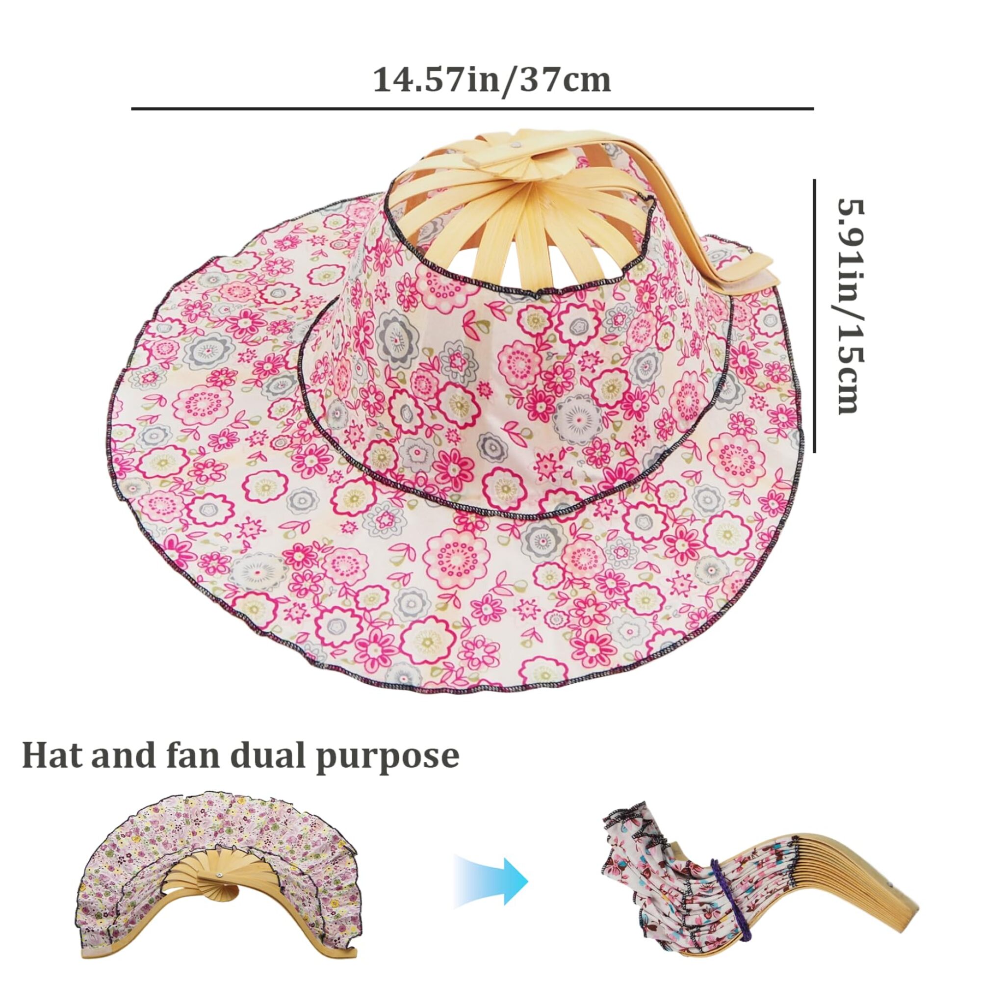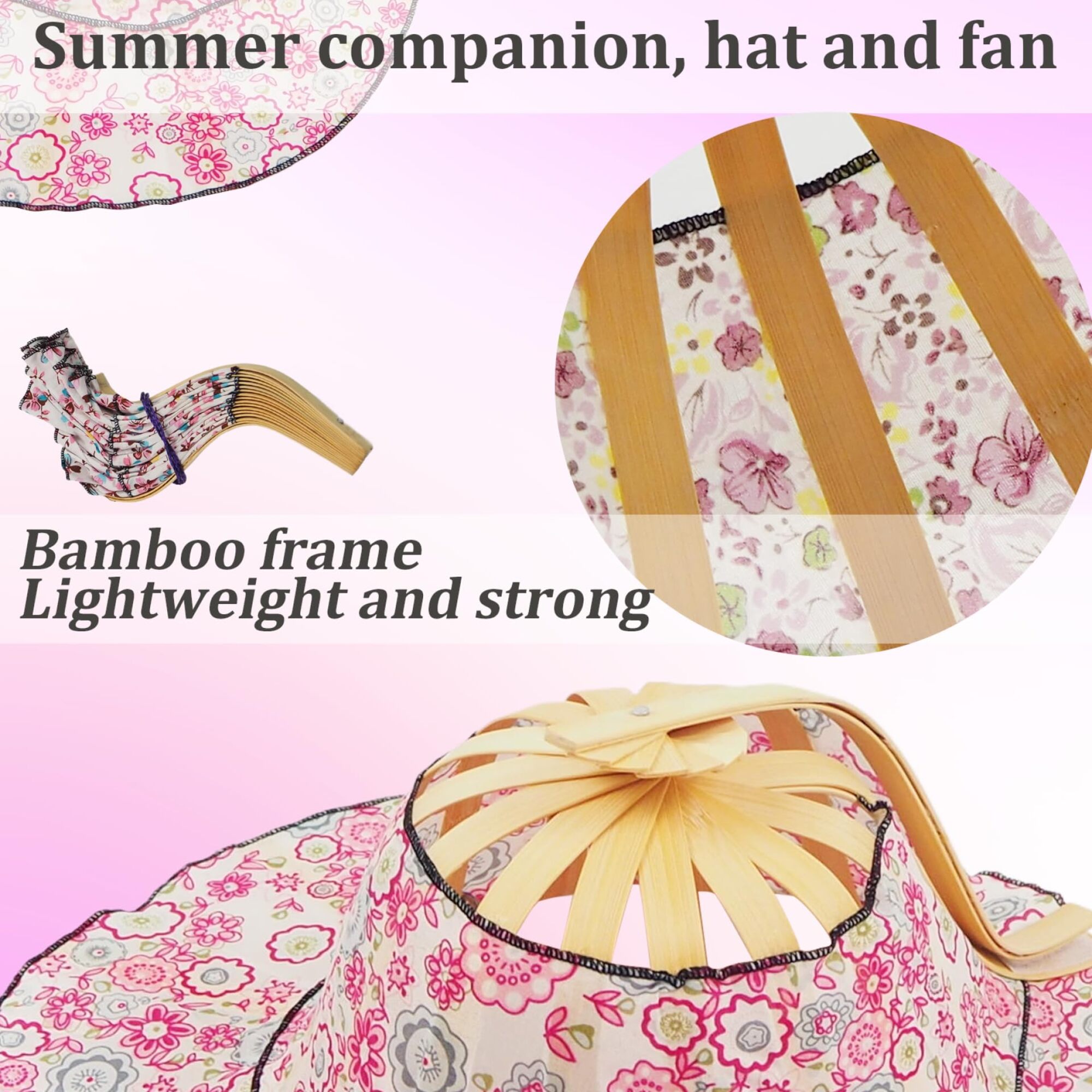 🌞 2-in-1 Design - This unique hat features a lightweight and breathable bamboo structure, beautifully adorned with vibrant floral patterns. It not only provides shade but also cools you down with its fan-like functionality.