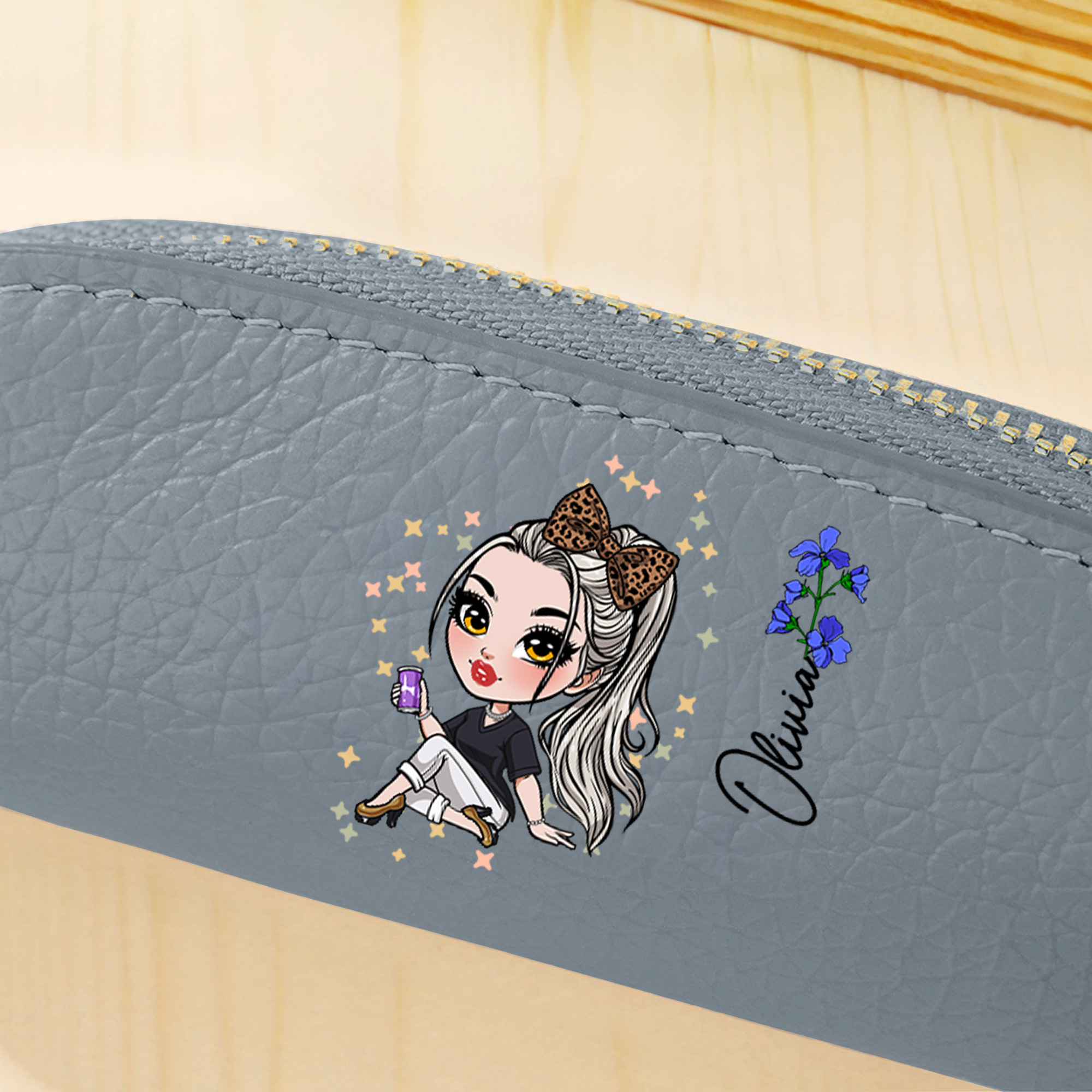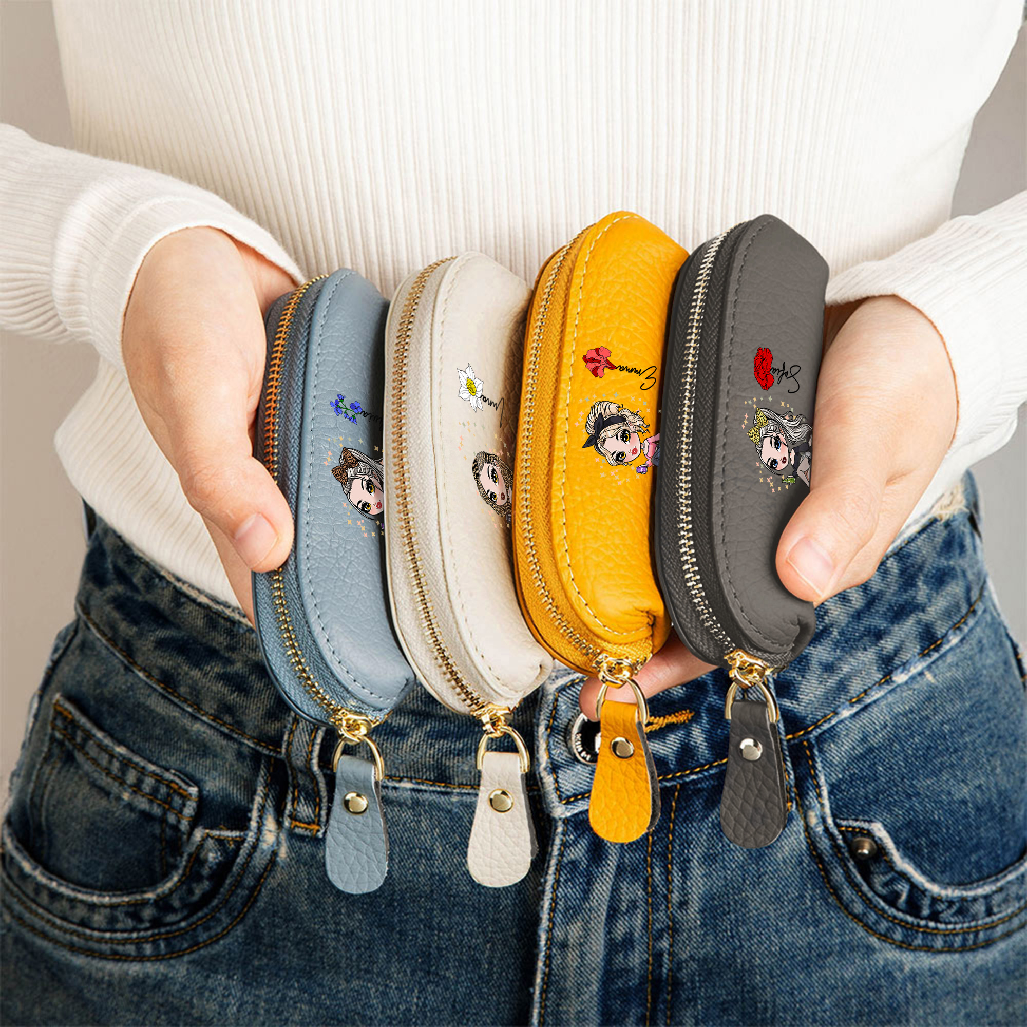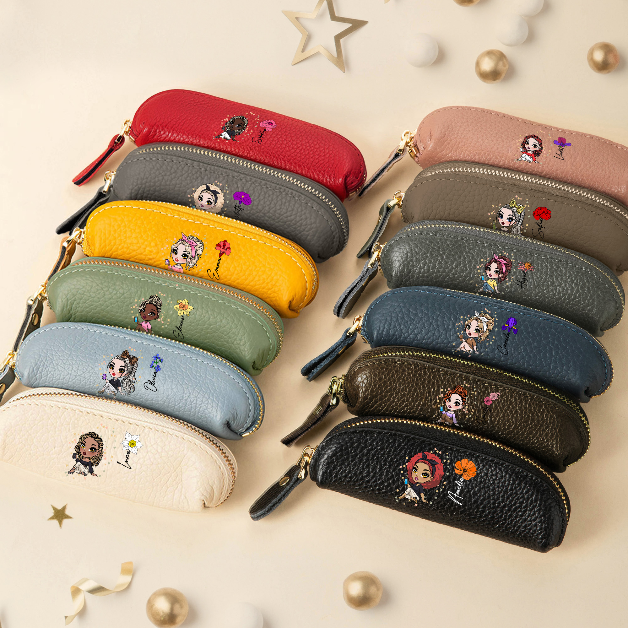 Personalized Design - This mini coin purse features a playful and stylish theme, complete with beautiful birth flowers and a charming cartoon girl. You can customize it by selecting the flower corresponding to your birth month and adding your name, making it uniquely yours!