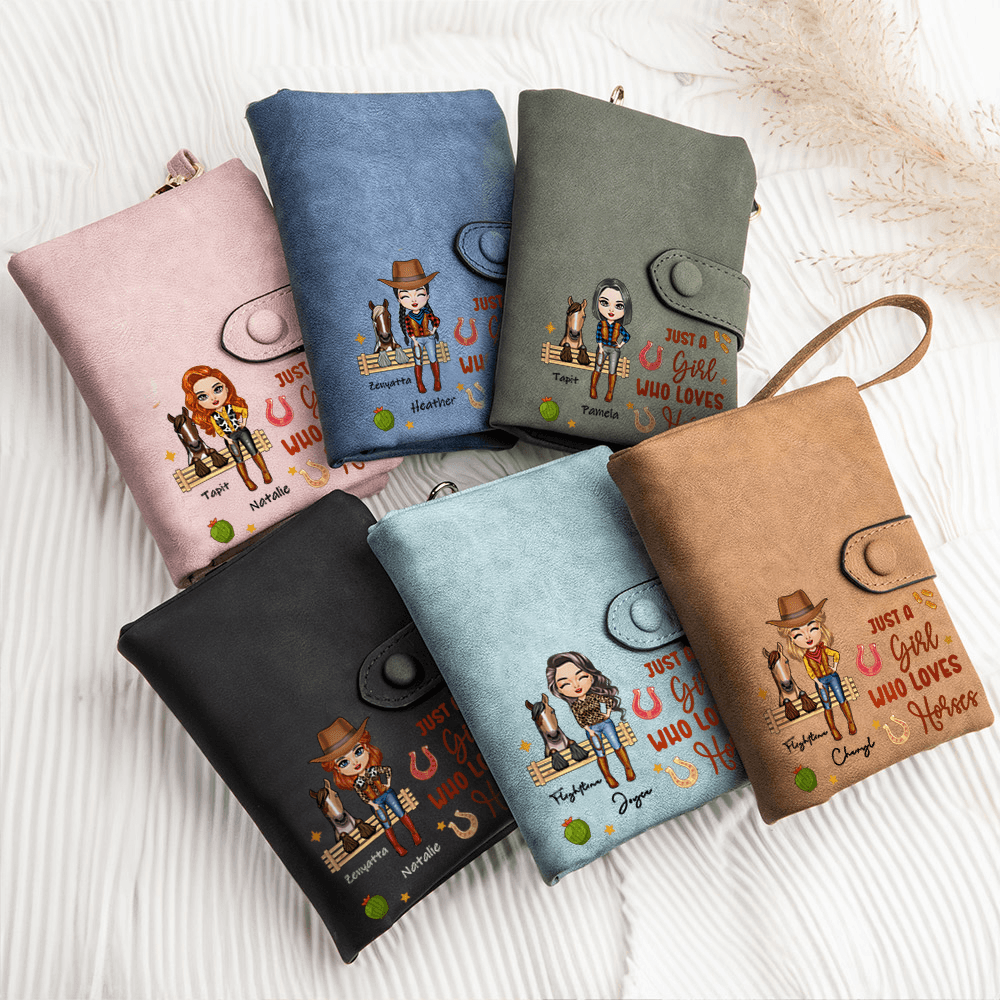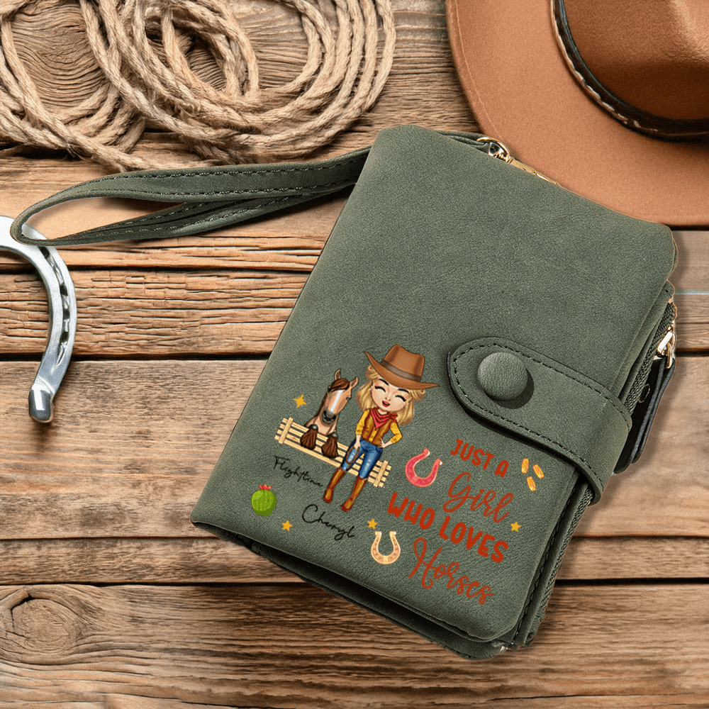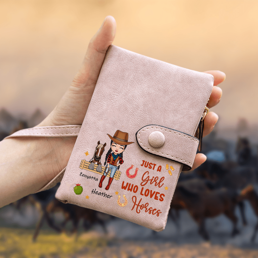 | Style | Personalized Western Cowgirl & Horse Clipart Leather Wallet |